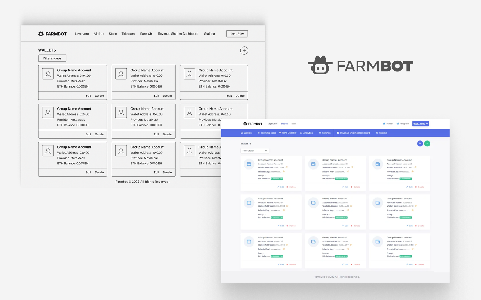 So, I designed a clear navigation system. The sidebar is our backbone: 'Wallets,' 'Farming Tasks,' 'Analytics,' etc. Each section has a clear purpose. We used visual hierarchy – making important things stand out – and grouping similar functions together. This way, even someone new to airdrops can find their way around without feeling lost.